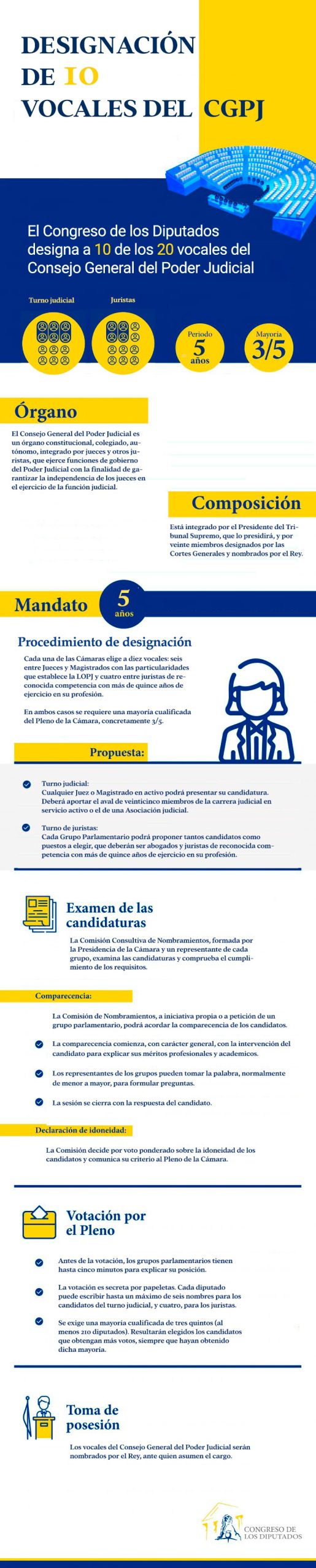 La designación de los vocales del Consejo General del Poder Judicial (CGPJ) es un proceso fundamental para garantizar la independencia judicial en España. El Congreso de los Diputados elige a 10 de los 20 vocales que integran este órgano constitucional, colegiado y autónomo, encargado de velar por el correcto funcionamiento del Poder Judicial.